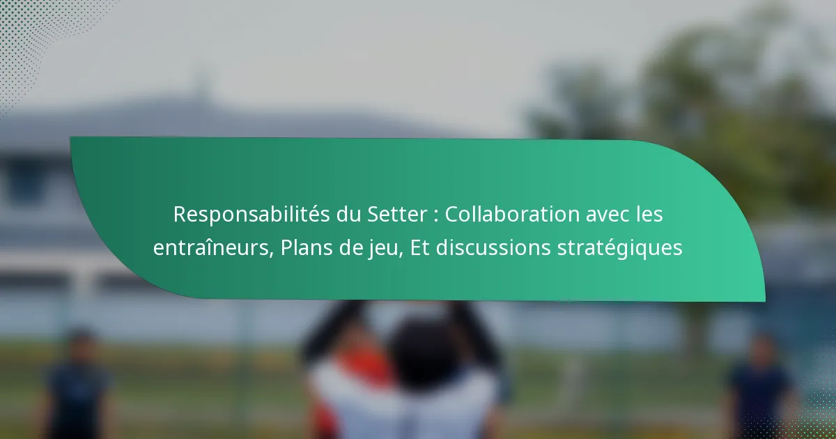 Les passeurs jouent un rôle crucial dans la collaboration avec les entraîneurs pour développer des plans de jeu et des stratégies efficaces. En se concentrant sur une communication claire et une participation active aux discussions stratégiques, les passeurs peuvent améliorer la performance de l’équipe et s’adapter aux situations de jeu changeantes.