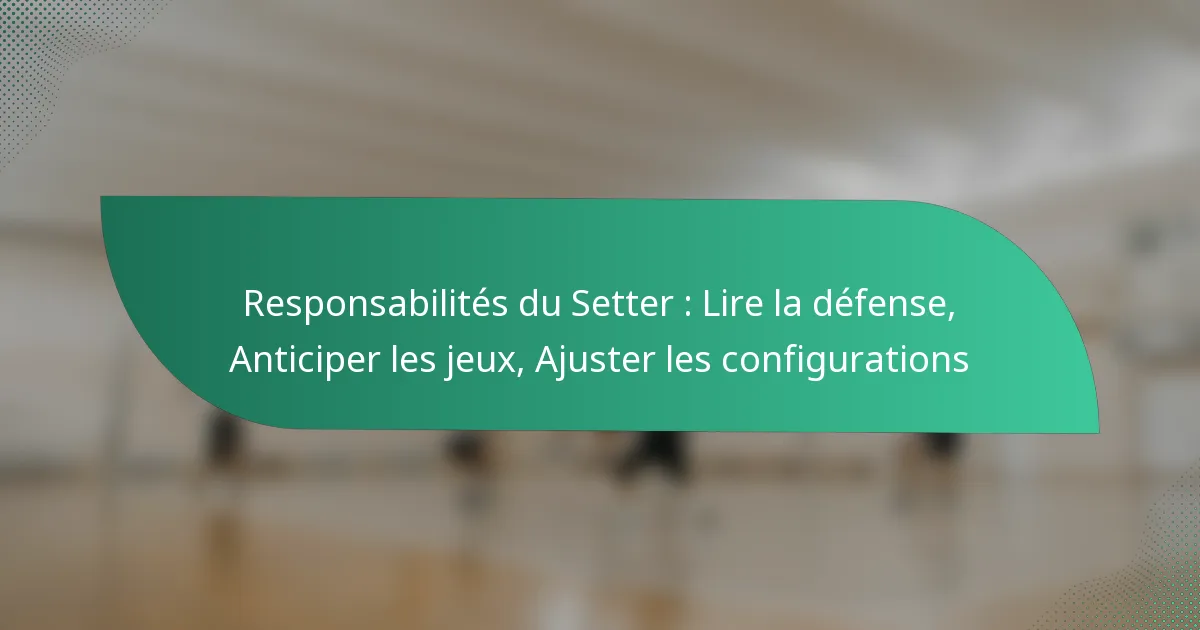 Les responsabilités principales d’un passeur dans les sports d’équipe impliquent de lire la défense, d’anticiper les jeux et d’ajuster les passes pour optimiser la performance de l’équipe. Ce rôle est crucial tant au volleyball qu’au basketball, où le passeur agit en tant que créateur de jeu, facilitant les opportunités de marquer et améliorant la dynamique de l’équipe.